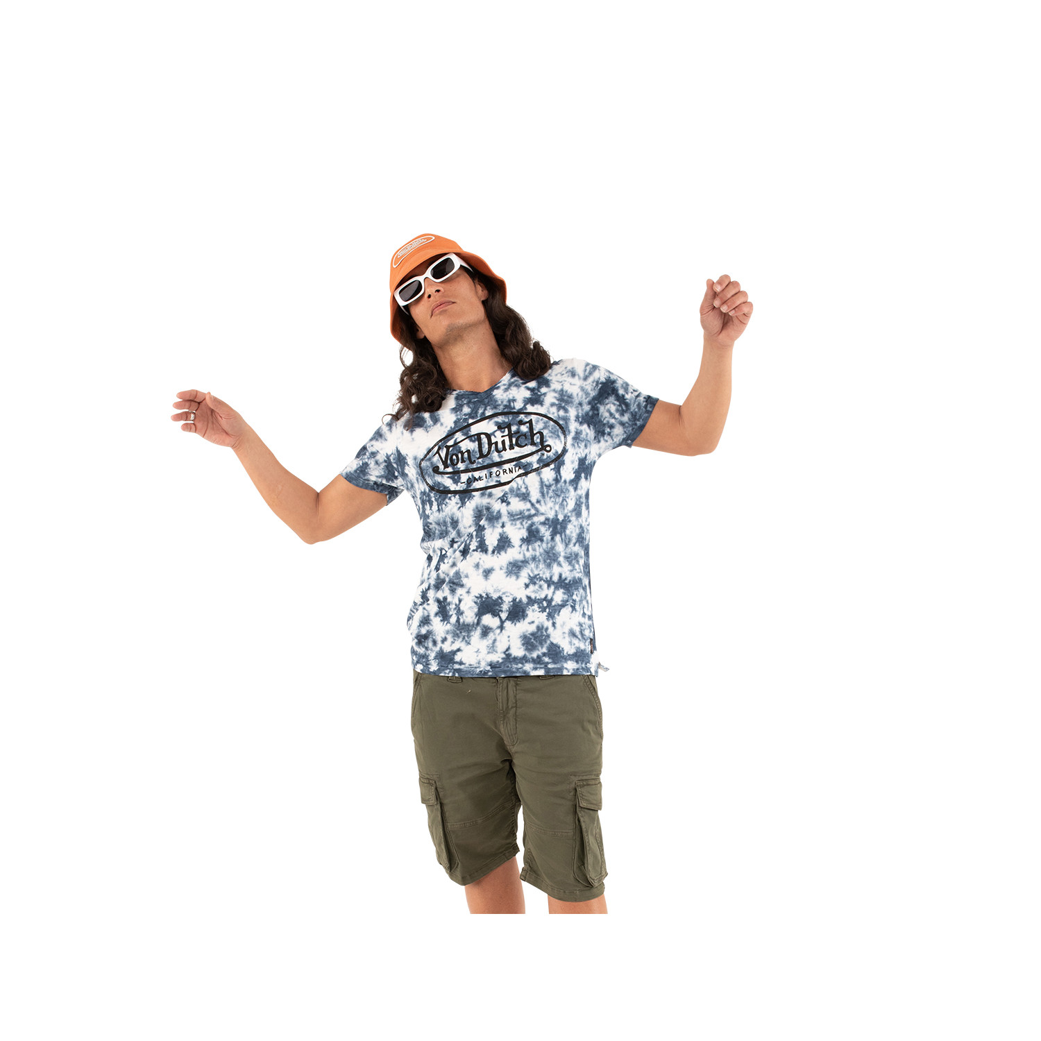 Von Dutch sort son nouveau Tee Shirt Homme Ron. Fabriqué à 100% en coton, cette capsule Tie and Dye propose 7 coloris et designs différents. Ce T-shirt Homme de couleur bleu et blanc, propose un col en V et des manches courtes. Disponible en tailles S, M, L, XL et XXL, en coupe droite regular fit.