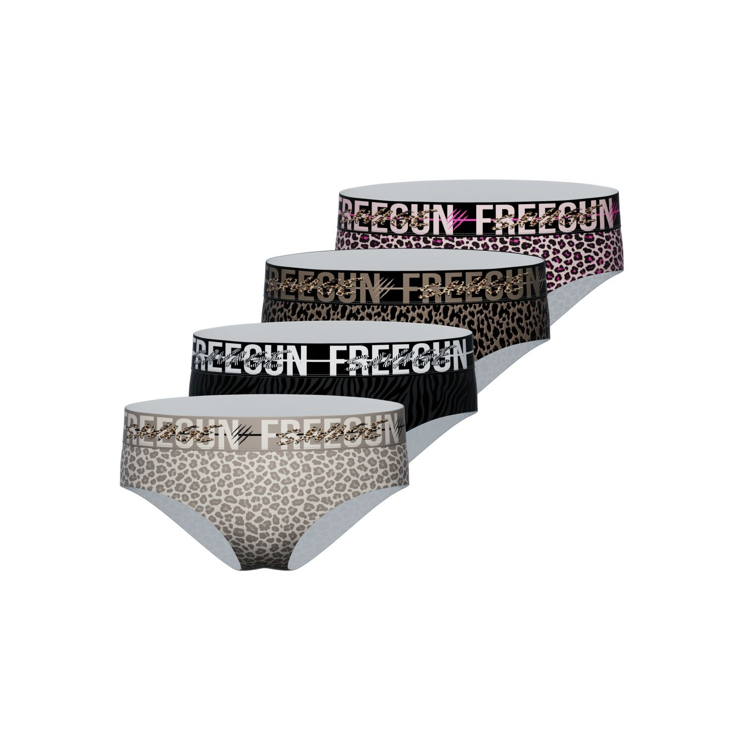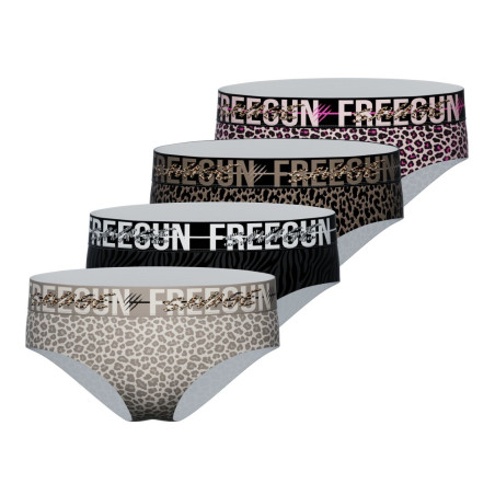 Apportez une touche fauve à votre collection de lingerie avec ce lot de 4 culottes femme Freegun au motif Léopard. Respirantes, stretch et confortables, elles s'adaptent à chaque mouvement tout en assurant un bien-être absolu. Lavables en machine à 30°, elles conservent leur douceur et leur élasticité. Disponibles en XS à XL, elles offrent une allure sauvage et tendance.