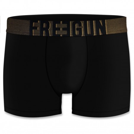 Freegun vous propose aussi des boxers sobres et au style unique ! La marque vous propose ici un boxer de la collection Signature ! Ce boxer noir Soft Touch (doux au touché) vous suivra partout avec confort et sobriété ! C'est l'occasion ou jamais de vous faire plaisir avec des sous-vêtements de qualité, tout neuf !