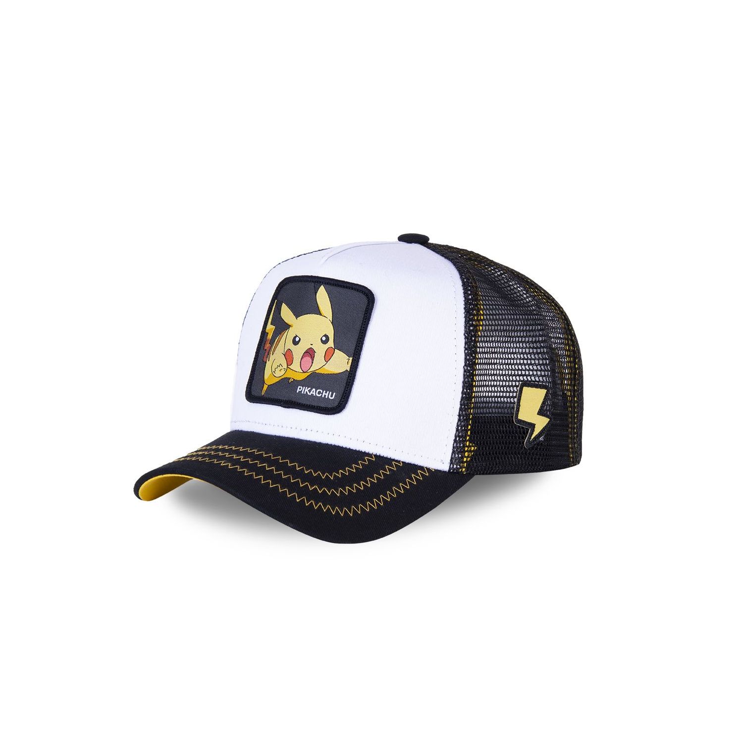 Aujourd'hui qui peut dire qu'il ne connaît pas Pikachu ? C'est le Pokemon le plus connu de la planète ! Si vous choisissez la casquette Capslab Pikachu blanc et noir vous allez vous démarquer des autres. Vous ne passerez pas inaperçu car on peut voir Pikachu en plein saut sur l'avant de la casquette. Optez pour un style sobre et moderne et devenez le dresseur que vous avez toujours rêvé d'être !