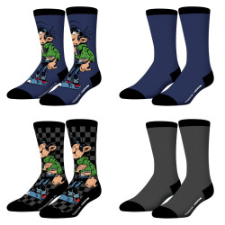 Les chaussettes hautes homme Freegun x Gaston Lagaffe sont fabriquées en coton de haute qualité, ces chaussettes hommes sont confortables et respirantes pour un port quotidien. Les dessins de Gaston apporteront une touche de style à n'importe quelle tenue. Les couleurs bleu marine, noir, vert et gris offrent un design fantaisie pour affirmer votre style. Disponibles en tailles 39-42 et 43-46, ces chaussettes conviendront à tous les homme. Ce lot de 4 paires de chaussettes est un excellent pour tous les fans de l'univers BD.